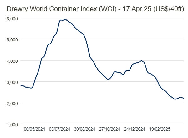 Drewry’nin Dünya Konteyner Endeksi bu hafta %3 düşerek 40 fitlik konteyner başına 2.192 dolara geriledi.