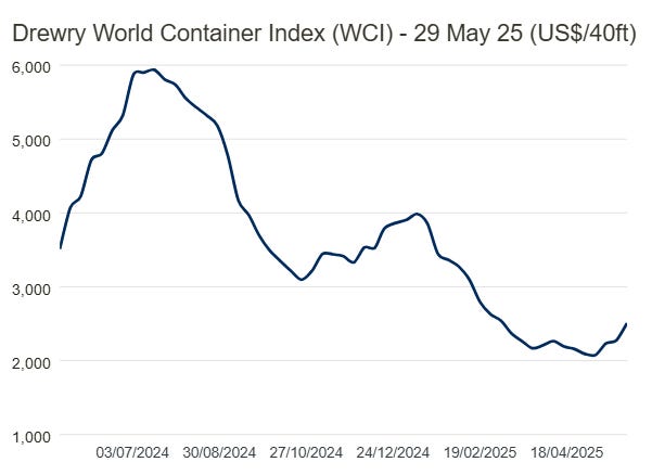 🌀 Drewry Container Index son bir yılda %65 düştü.