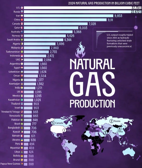 ABD, 2024 yılında küresel doğal gaz üretiminin %25’ini karşılayarak açık ara lider konumdadır. Üretim hacmi, İran ve Çin’in toplamına neredeyse eşittir. Küresel arzın az sayıda ülke arasında yoğunlaşması ve Orta Doğu’daki jeopolitik riskler, özellikle ABD gibi büyük ve istikrarlı üreticilerin enerji piyasasındaki rolünü daha da artırmaktadır.