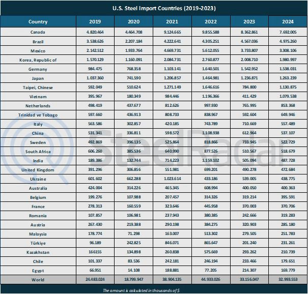 ABD’nin Demir-Çelik İthalatında 2019-2024