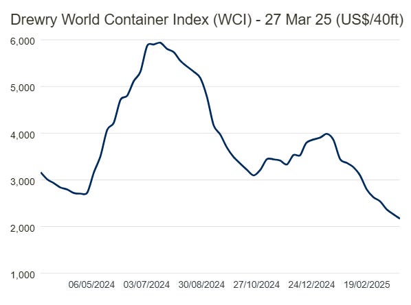 Drewry Dünya Konteyner Endeksi bu hafta %4 düşerek 40ft konteyner başına 2.168 dolara geriledi.