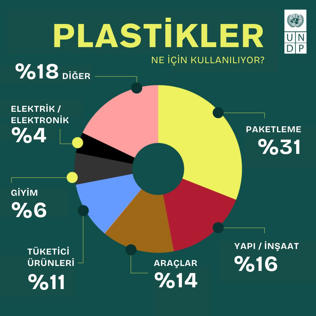 Plastikler en çok %31 oranında paketleme sektöründe kullanılırken, inşaat, araç üretimi, tüketici ürünleri, giyim, elektronik ve diğer alanlarda da yaygın olarak kullanılmaktadır.