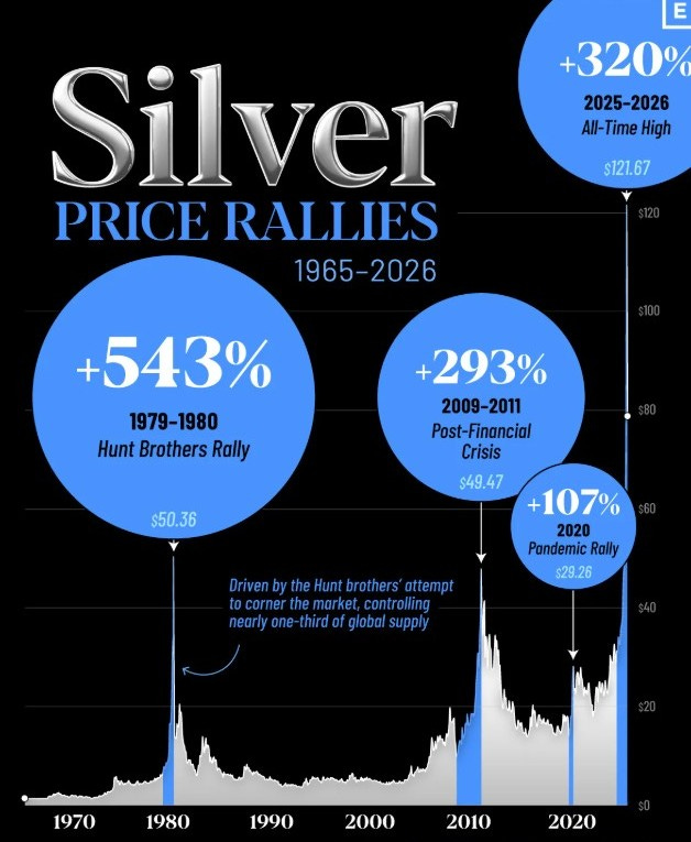 Gümüş fiyatları, arz kısıtları ve artan jeopolitik risklerin etkisiyle 2025–2026 döneminde tarihinin en güçlü rallisini yaşadı. Ons fiyatı kısa süreliğine 120 doların üzerine çıkarken, gümüş hem güvenli liman talebi hem de sanayi metali olma özelliğiyle öne çıktı.