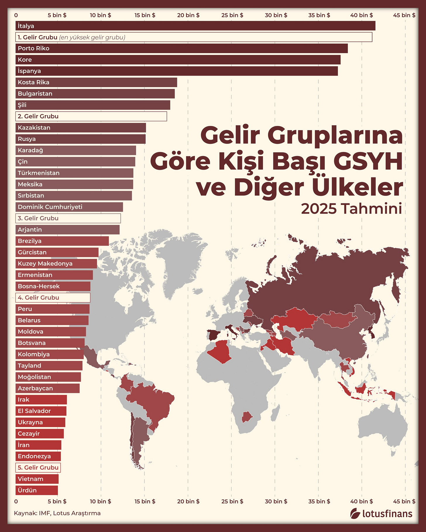 2025 Tahmini: Ülkelerin Kişi Başı GSYH ve Gelir Grupları
