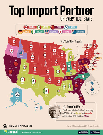 Her ABD Eyaletinin En Büyük İthalat Ortağı