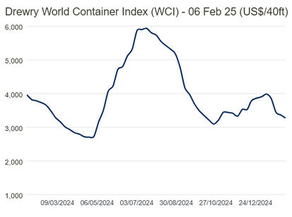 Drewry'nin Dünya Konteyner Endeksi (WCI) bu hafta %3 düşüşle 40 ft konteyner başına 3.273 dolara geriledi. WCI bileşik endeksi, Eylül 2021'deki 10.377 dolarlık pandemi zirvesinin %68 altında kalırken, aynı zamanda 2019’daki 1.420 dolarlık pandemi öncesi ortalamanın %130 üzerinde seyrediyor.